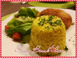 Espalhe o arroz numa assadeira larga e envolva com o ovo batido, açafrão, manteiga e o queijo parmesão, envolva tudo muito bem com a espátula e deixe arrefecer.